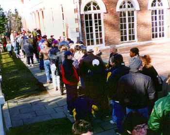 On January 11, 1998, The Nassau County Museum of Art opened a one-man exhibit called The Civil War - The Paintings of Mort Künstler. The show included more than 130 paintings, drawings and studies and one sculpture. They were gathered from public and private collections all over the United States. It was billed as the largest exhibit of Civil War art ever held in the New York Metropolitan area and turned out to be a milestone and memorable event for the museum. It broke all attendance records with more than 30,000 people visiting during the seven-week run of the show. This photograph shows the line of people waiting for admission.