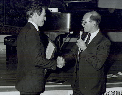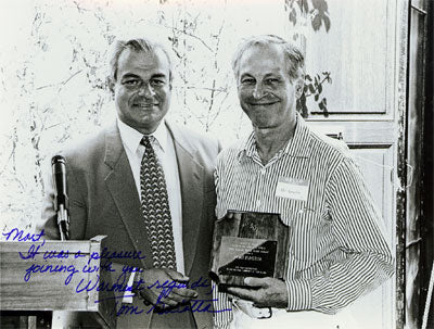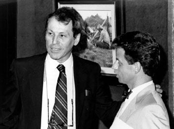 Thomas S. Gulotta, the County Executive of Nassau County in New York and Mort Künstler are seen here at the county’s Annual Arts Recognition Luncheon on August 24, 1995. Mr. Gulotta is presenting the 1995 Annual Visual Artist Award to Mort Künstler.