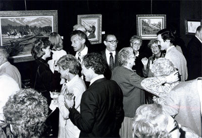 On October 20, 1985, a preview of the Mort Künstler exhibit, “Epic Paintings of America” at Hammer Galleries in New York City was well attended and included famed bird and wildlife artist Arthur Singer (center, with glasses.)
