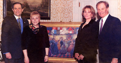 Governor James and Roxane Gilmore of Virginia stand next to the painting Candlelight and Roses with Deborah and Mort Künstler. The occasion was a dinner in honor of the artist at the Governor’s Mansion in Richmond. At that time Governor Gilmore officially declared March 18, 1999 Mort Künstler Day in the Commonwealth of Virginia.