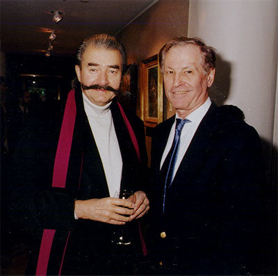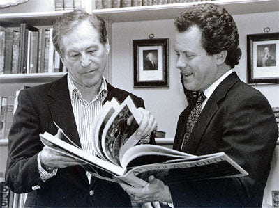 On October 20, 1985, Hammer Galleries in New York City gave Mort Künstler his fifth one-man exhibition. It was an important event as it showed the first painting of his Ellis Island series, Freedom, as well as his first venture into the sculpture medium with a bronze entitled Call to Freedom. There was also great anticipation for his new book at the time, the first edition of The American Spirit - The Paintings of Mort Künstler, published by Harry N. Abrams, Inc. with text by Henry Steele Commager. Mort Künstler is pictured here with M. Stephen Doherty, editor-in-chief of American Artist magazine and author of the biographical chapter in the book.