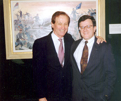 In 1992, the book Images of the Civil War - The Paintings of Mort Künstler with text by Dr. James McPherson was published by Gramercy, a division of Random House. As part of the celebration, an exhibition of paintings was organized that was shown at Gettysburg National Military Park, from May 15 to August 1, 1992. This was the first one-man exhibition of a living artist ever given at the Park Museum. Mort Künstler was given the same honor of being the first artist ever to have a one-man show at the beautiful Hall of Valor Museum at the New Market Battlefield in Virginia from August 15 to October 15, 1992. The exhibition then moved on to open at Hammer Galleries in New York City on November 16. It was there at the preview opening that this photo was taken of Künstler with the Pulitzer Prize winning author of Battle Cry of Freedom, Dr. James McPherson.