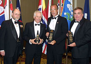 On August 4, 2001, Mort Künstler received the prestigious Henry Timrod Southern Culture Award from the Military Order of the Stars and Bars, an international historical association of descendants of the Southern officer corps during the War Between the States. Kunstler was awarded the honor in recognition of his book, The Confederate Spirit: The Paintings of Mort Künstler, which features many of his images from the Civil War and a narrative by Civil War historian Dr. James I. Robertson, Jr. Shown here are Honorable Richard B. Abell, Chairman, Military Order of the Stars and Bars; Mort Künstler; Scott Bowden and William Ward, co-recipients of Douglas Southall Freeman Award.