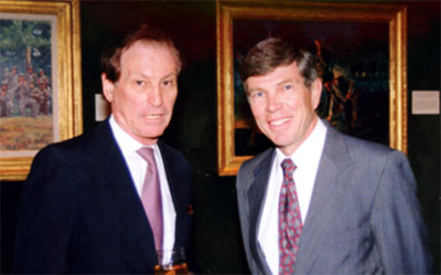 On the night of November 16, 1992, Hammer Galleries in New York City celebrated the preview opening of the Mort Künstler exhibition, “Images of the Civil War.” It also coincided with the release of Künstler’s new book by the same title. Present at the opening was historian Rod Gragg, author of the book Confederate Goliath: The Battle of Fort Fisher. Rod Gragg and Mort Künstler pose in front of the painting, “The Gunner and the Colonel,” which portrays the Battle of Fort Fisher. The painting would later become the cover for the paperback edition!