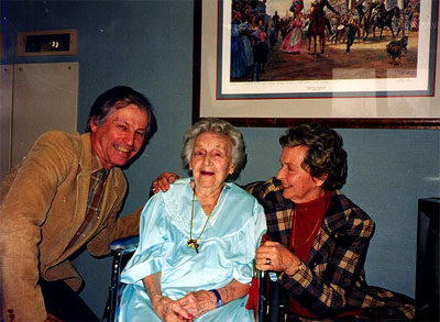 Mort Künstler with Julia Jackson Christian Preston, the granddaughter of “Stonewall” Jackson, and her daughter, Mrs. Cortlandt P. Creech at the Presbyterian Home, in High Point, North Carolina. A “Stonewall” Jackson room had been established at the home in honor of Mrs. Preston and was decorated with Künstler prints. Mrs. Preston had requested to meet the artist. Mrs. Preston was 102 at the time of this photo in 1989; she died two years later.