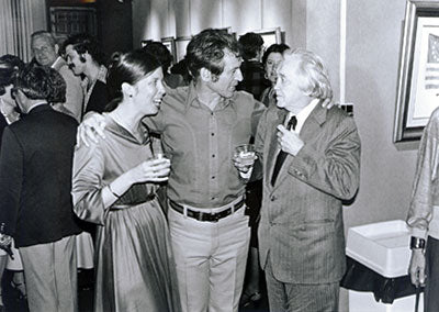 On October 22, 1979, there was a preview of the Mort Künstler exhibit, “Epic Paintings of America.” It was Künstler’s second show at Hammer Galleries in New York City and the turnout was excellent. All the paintings were sold on opening night. Celebrating the evening are Richard Lynch, at that time manager and today, the President of the Gallery, Mort Künstler and the late Victor Hammer who ran the Gallery until his death in 1985.