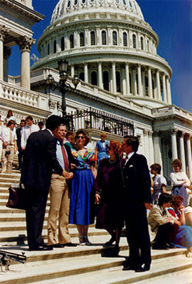 Mort and Debbi Künstler are seen here on the steps of the U.S. Capitol before the presentation of the Ellis Island trilogy to Speaker of the House, Tip O’Neil in 1986.