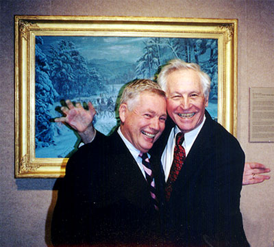 The artist, Leroy Neiman with Mort Künstler at the preview opening of “Jackson and Lee, Legends in Gray” held at the Hammer Galleries in New York City on October 16, 1995. The event also celebrated the release of the book of the same name with the paintings of Mort Künstler and text by famed historian James I. Robertson, Jr.