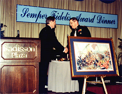 In 1989, The Marine Corps Command and Staff College Foundation commissioned Mort Künstler to do a painting entitled “Shall I Board Her, Sir?” On February 24, 1990 at their annual Semper Fidelis Award Dinner, the painting was unveiled by Mort Künstler and presented to Lt. Gen. Went, Commandant of the Marine Corps. Signed and numbered prints of the painting were put up for sale for the first time as a fundraiser for the organization.